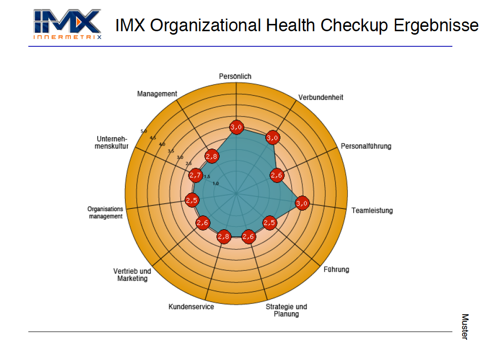 Anhand von fünf Leistungskennziffern misst der OHC die aktuelle Effizienz dieser Bereiche und identifiziert somit die Schwachstellen, die es zu entwickeln gilt, um langfristig höhere Leistungen innerhalb der Organisation zu erzielen. Die Anzahl und Thematik der untersuchten Bereiche ist je nach Bedarf flexibel modifizierbar. Den Fragebogen kann man also flexibel auf die Bedürfnisse und eventuell vorhandene interne Sprache Ihres Unternehmens/Kunden anpassen.